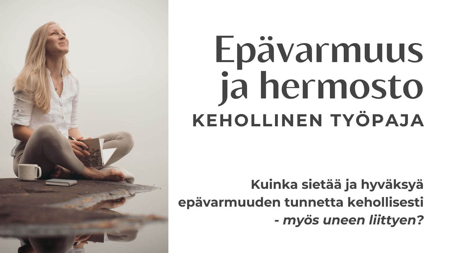 Jos sinä haluat oppia, miten tukea itseäsi epävarmuuden hetkellä kehollisesti ja lempeästi, olet lämpimästi tervetullut mukaan tähän kokemukselliseen työpajaan.